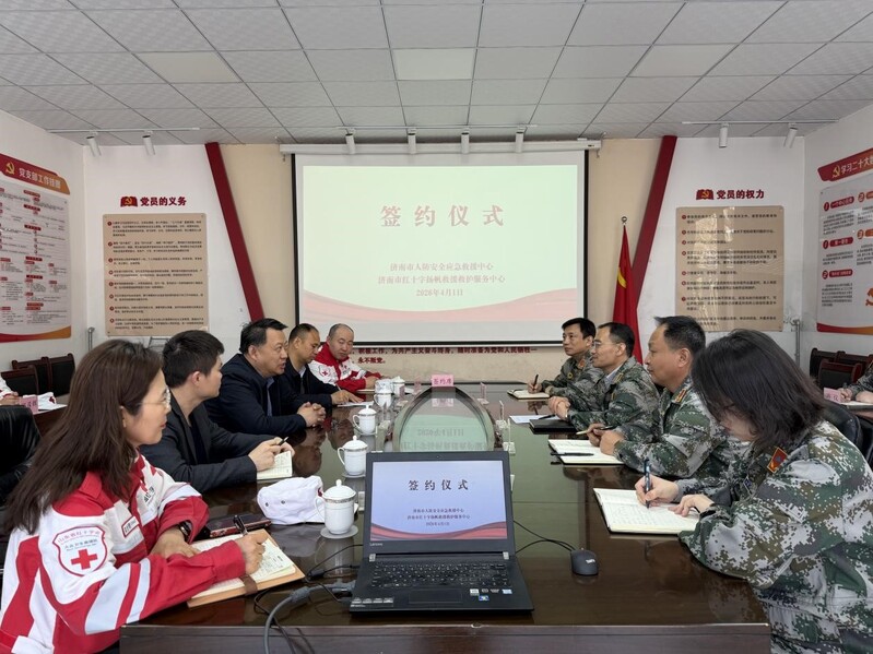 4月1日上午,市人防安全应急救援中心与市红十字扬帆救援救护服务中心举行合作签约仪式,正式开启“济南国动”人防应急救援队共建新征程。市红十字会党组成员、副会长王永君,市国动办党组成员、副主任郎咸颖及有关人员出席签约仪式。