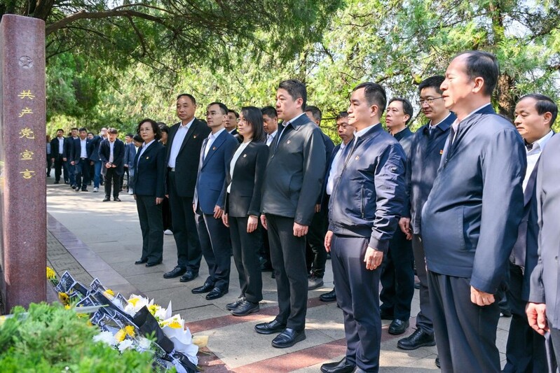 李洪伟同志迈步上前,仔细整理花篮挽联。随后,全场人员行三鞠躬礼,以此表达对革命先烈的深切缅怀和崇高敬意,追忆革命先辈为民族独立和人民解放不懈奋斗的峥嵘岁月。