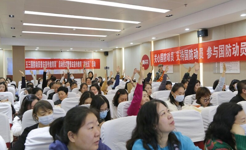 山河安澜》为题,结合实例阐述了国防动员的重要意义和公民应尽的责任,慷慨激昂的讲述激发了现场居民的强烈共鸣,引来阵阵掌声。