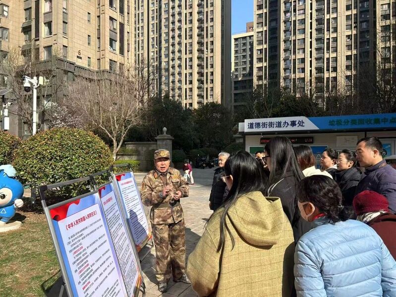 3月19日上午,槐荫区国动办联合道德街街道办事处在绿地新城社区开展国防动员普法和军事设施保护宣传教育活动。