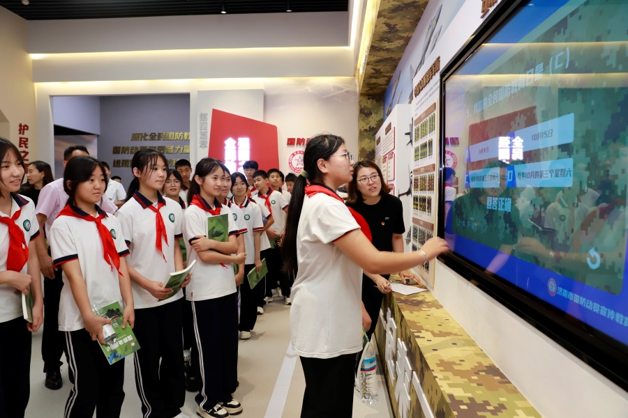 开馆仪式结束后,与会领导及各位嘉宾参观了济南市国防动员宣传教育馆,来自章丘二中的20余名学生走进济南市国防动员宣教馆抢先体验,并在“互动答题体验区”学习国防动员知识,举行有奖答题活动,收获满满。