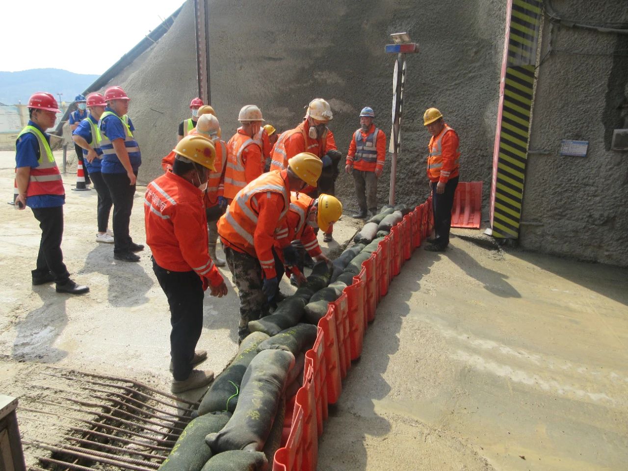 接到险情预警后,各工作小组迅速集结,根据指令到达任务区域,立即展开相关工作。指挥协调组根据现场情况制定抢险方案,下达任务指令;警戒疏散组拉起警戒线,组织施工人员按照预定路线进行疏散撤离;物资保障组迅速整理器材、装具,将抽水泵、排水管等运往险情点;抢险救援组在洞口放置挡水板、码放沙袋,安装水泵等抽水设备;后勤保障组的医护人员随时待命,为工人健康安全保驾护航。